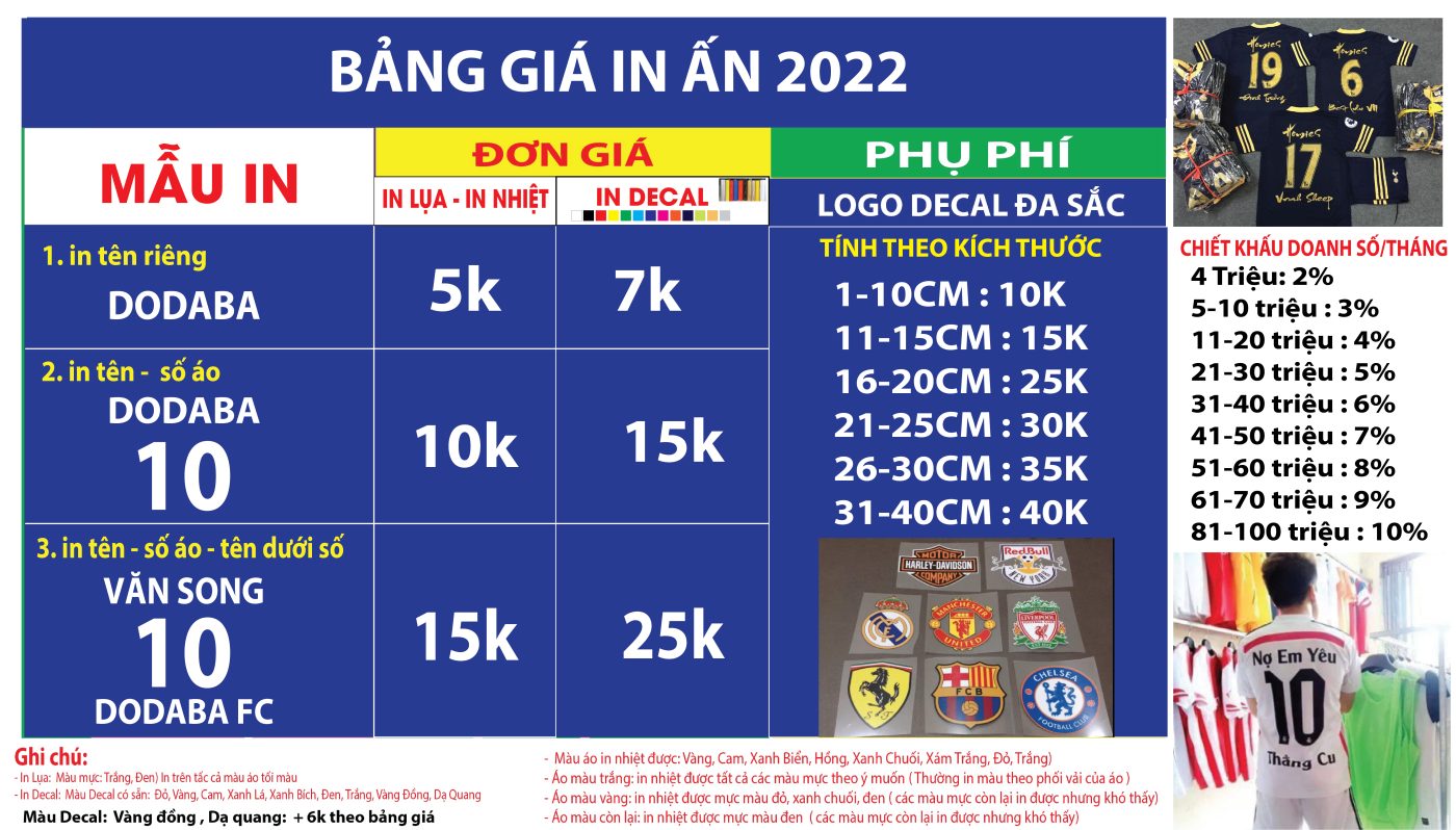 - Dịch vụ in áo bóng đá logo chữ số lấy nhanh, rõ ràng, bền đẹp, bảo hành trọn đời.